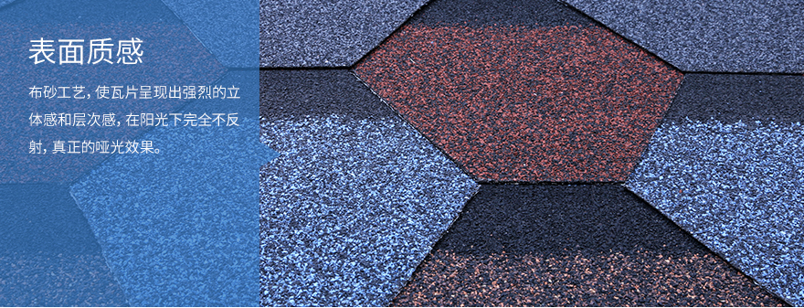| 品名 | 產(chǎn)地 | 瀝青 | 載體 | 彩砂 | 特點 |